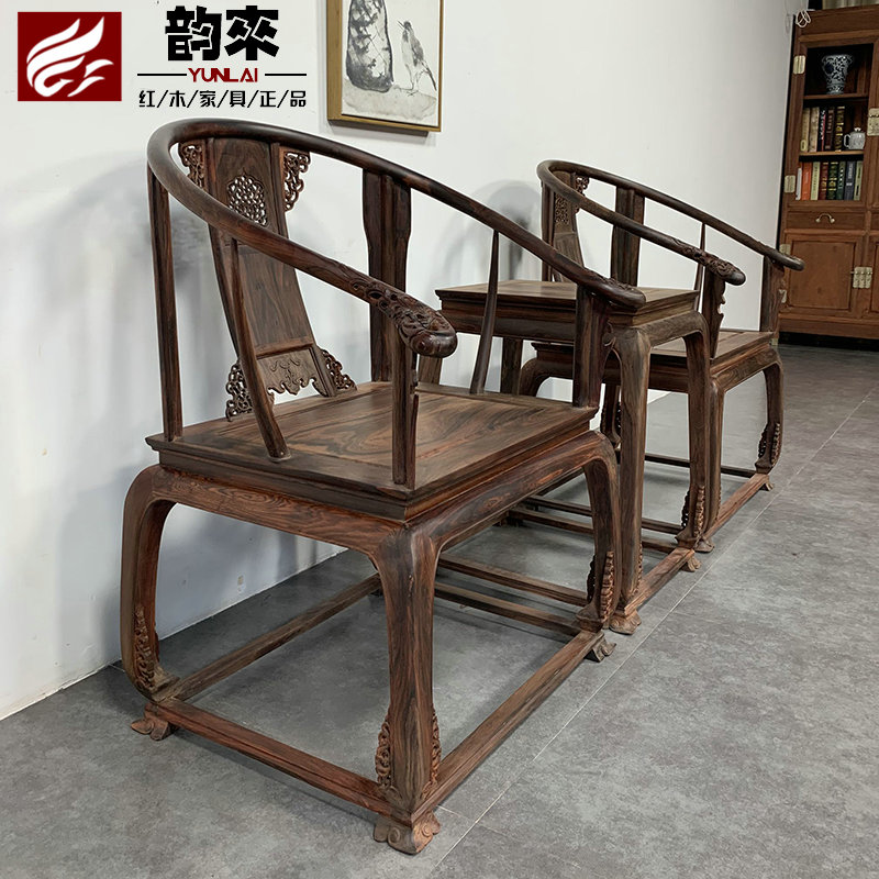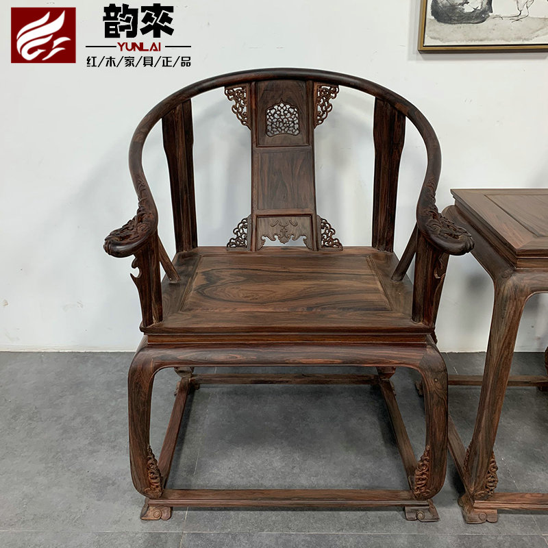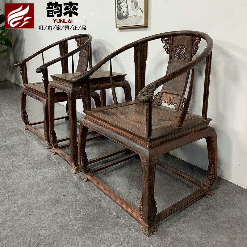 Lao Grand Red Acid Branch Palace Chair Circle Chair Palace Court Chair Three Sets of Ming and Qing Classical Dating Yellow Sandalwood Furniture