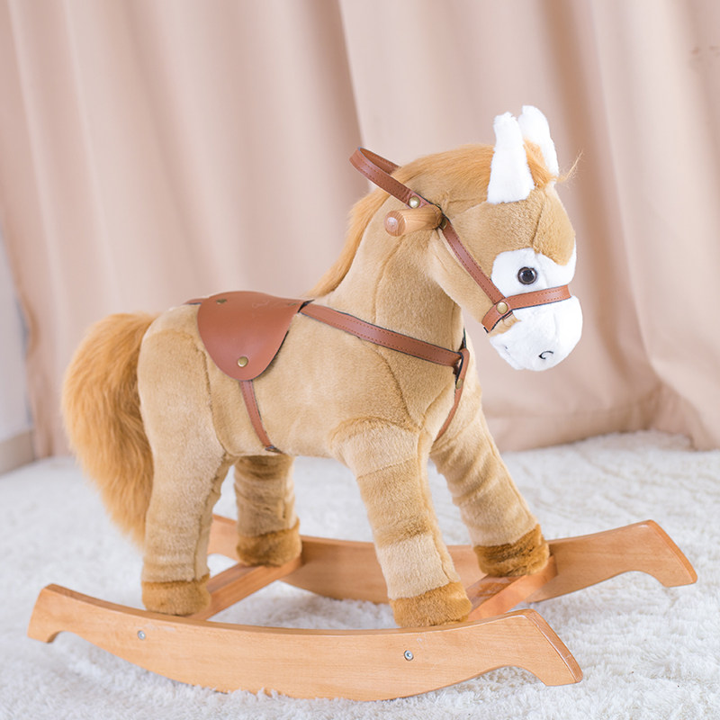 Blue Castle Children Plush Solid Wood Trojan Horse No Music Italy Rocking Pony Birthday Children's Festival Gifts