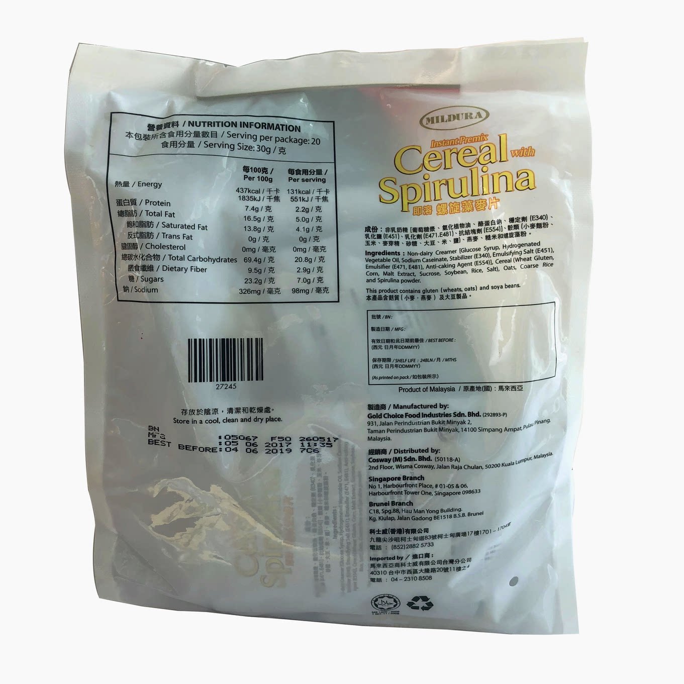Hong Kong Cosway Mildura Instant Spirulina Cereal (No Added Sugar) 27245