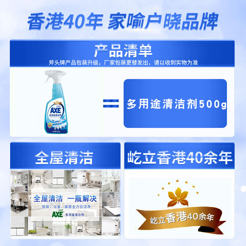 AXE axe headboard multifunction general cleaning agent 500g * 2 bottles powerful decontamination kitchen Dressing Room Lemon clear
