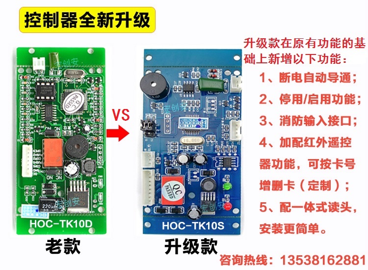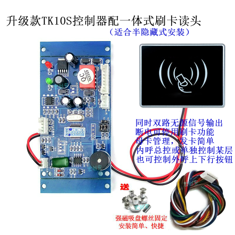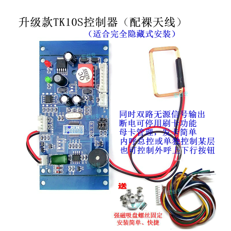 TK10S controller swipe card reading head TK10S controller (with bare antenna 12V2A power adapter high quality ID keychain card (20 customized 20-channel expansion board TK10