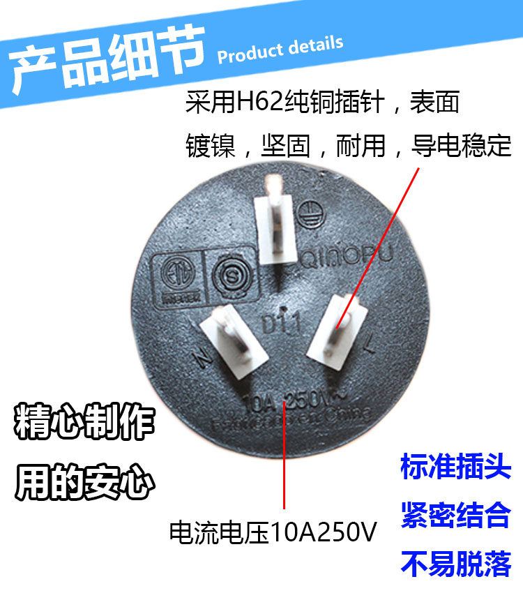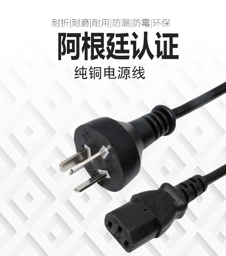 Pure copper Argentinean plug power cord 3X0 75 1 1 5 squared 1 8 m 3 m Argentina Power Cord