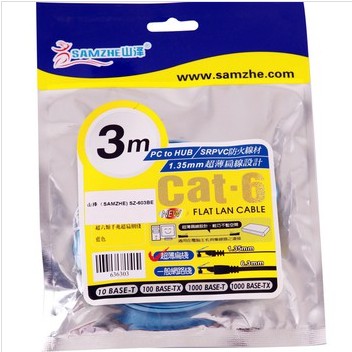 Shanze SZ-603BE super six gigabit ultra flat network cable blue gold-plated head 3 meters (two concessions)