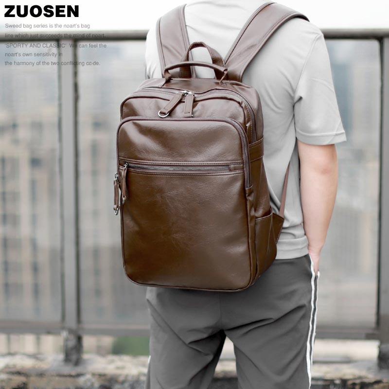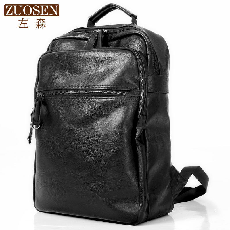 Zuo Sen men's bag Korean version trend double shoulder leather bag men's computer bag student school bag backpack men's leisure travel bag tide