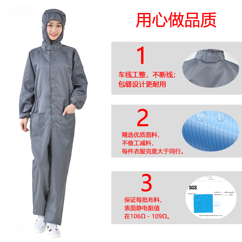 Anti-static one-piece work clothes dust-free clothing with caps for men and women electrostatic protective clothing spray painted white blue dustproof clothing