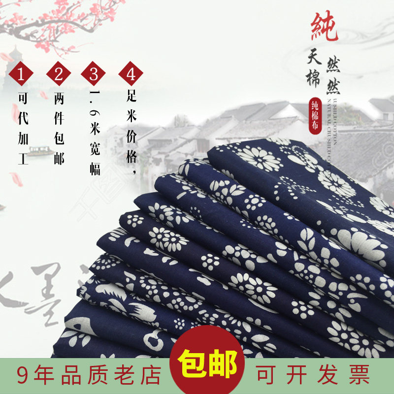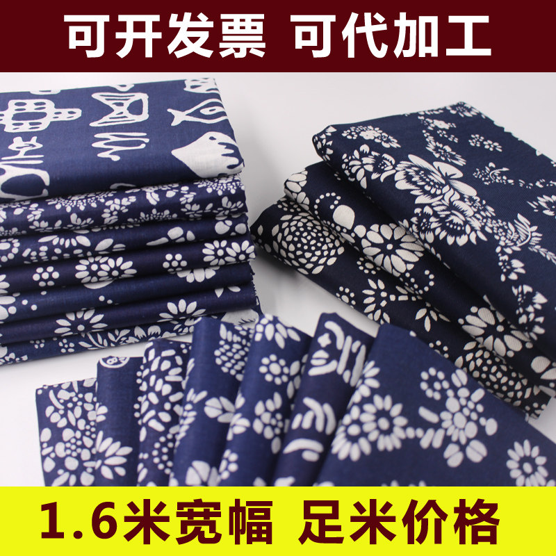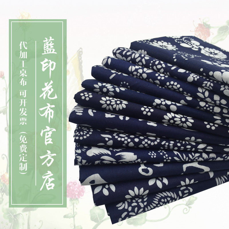 Wuzhen blue printed cloth Chinese style blue and white decorative pure cotton floral blue flower cloth handmade ethnic style batik tablecloth