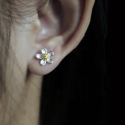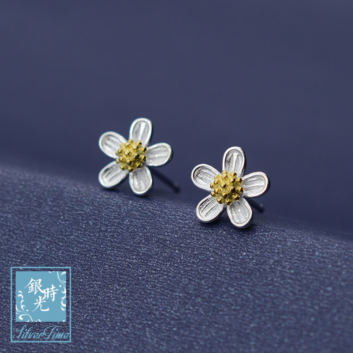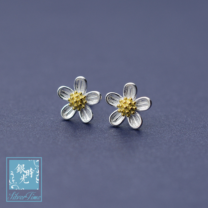 Silver Time S925 Pure Silver Ear Nails Fresh Five Pelpiece Flower Earring Creative Personality Female Ear