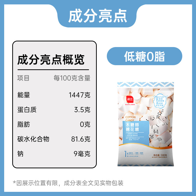 Exploits hot sell (low sweet 0 fat) Xylitol marshmallow 500g * 2 (send snowflake crisp with biscuit 200g) (burst hot sell) original flavor cotton candy 500g * 2 (send snowflakes