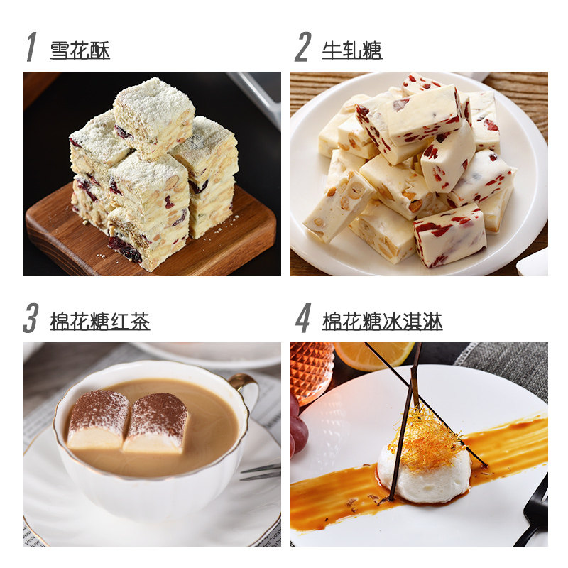 Exhibition art cotton candy baking special low sweet 500g snowflake flaky pastry dry milk date cranberry nougat raw material