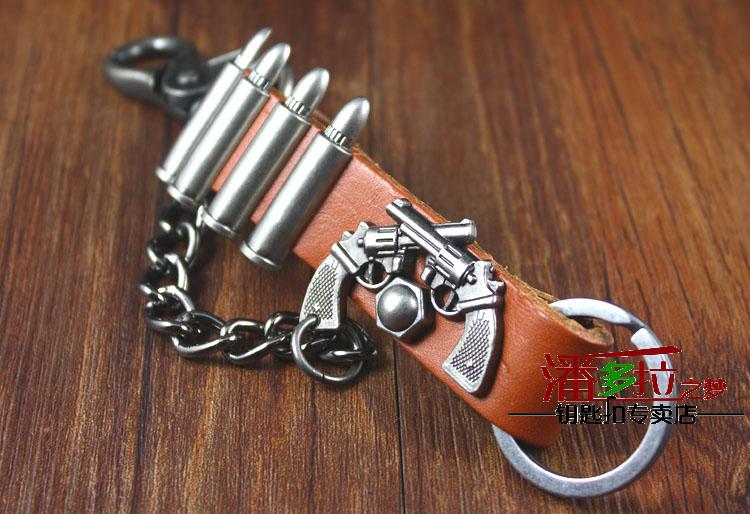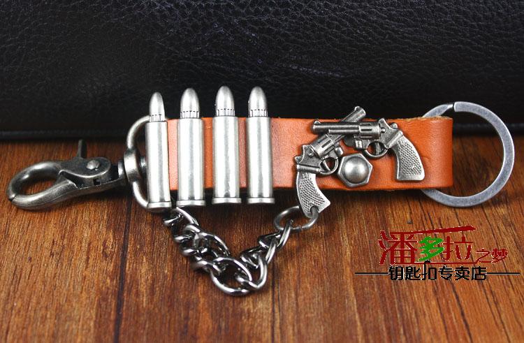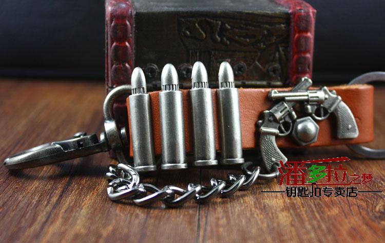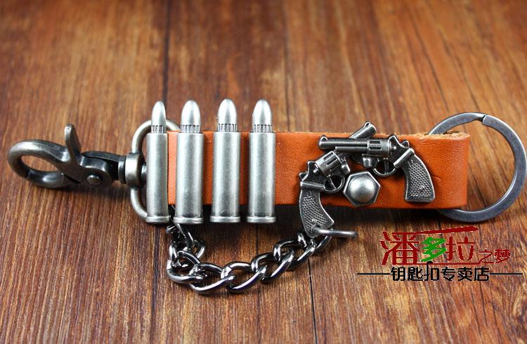 Creative retro bullet row key chain high-grade men's leather waist key chain alloy
