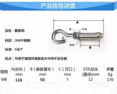 201 stainless steel small opening m8 * 110M8 galvanized hook 6 201 stainless steel anti-falling model 304 stainless steel M8 * 110304 large opening M8 * 10530