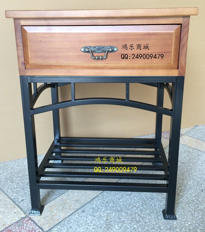 The Euro-style iron art bed head cabinet solid wood drawer shelve can be customised