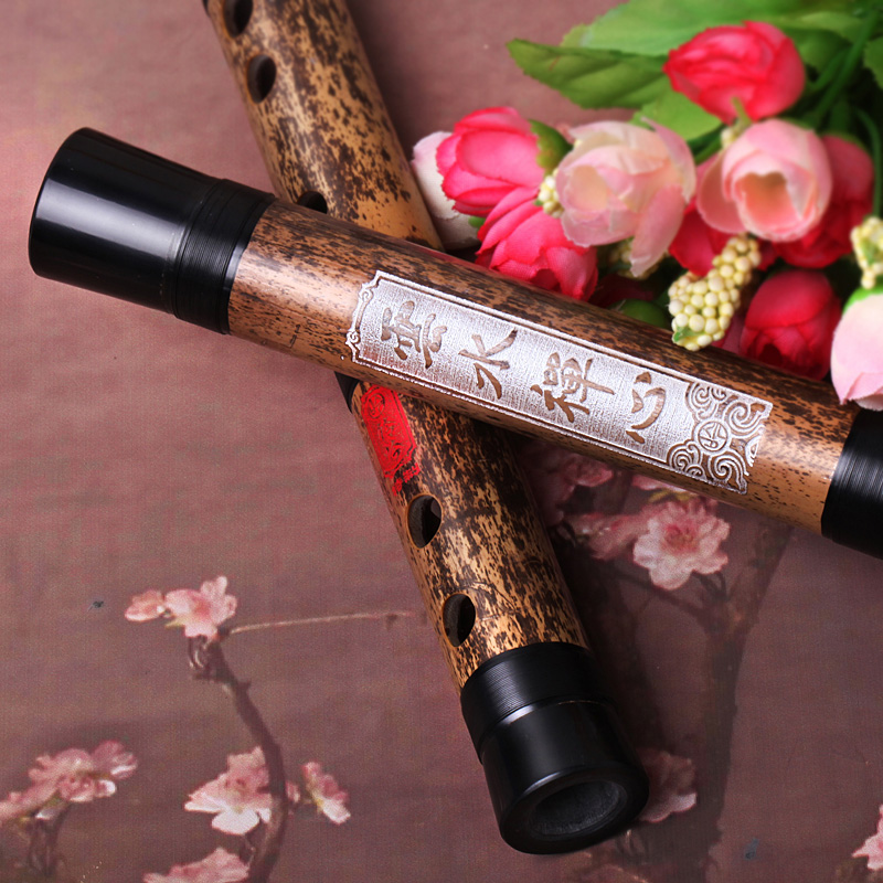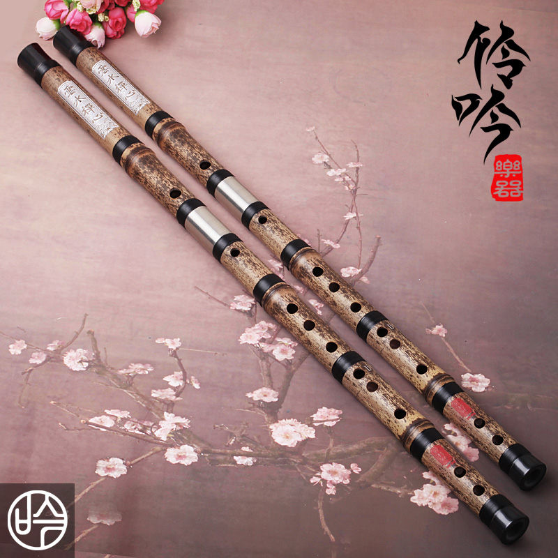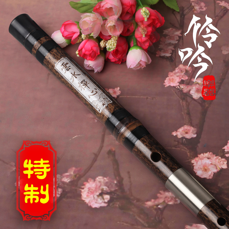 (Ling Yin) Special-level professional performance double-connected white copper purple bamboo flute national musical instrument bamboo flute delivery bag
