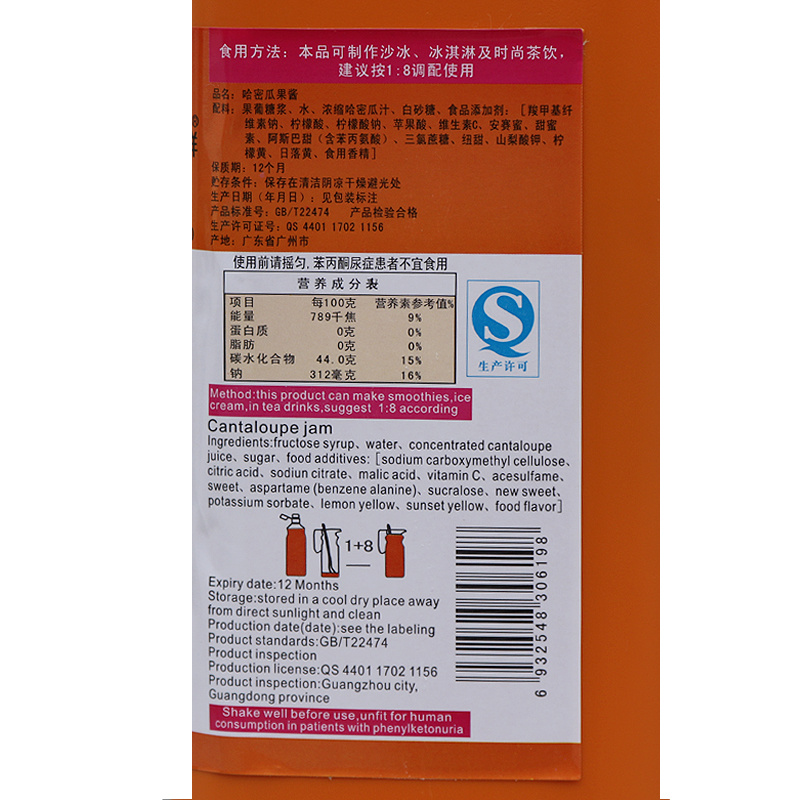 Concentrated juice Cantaloupe juice jam Baili fresh cantaloupe juice thick pulp 1 9L cantaloupe juice drink