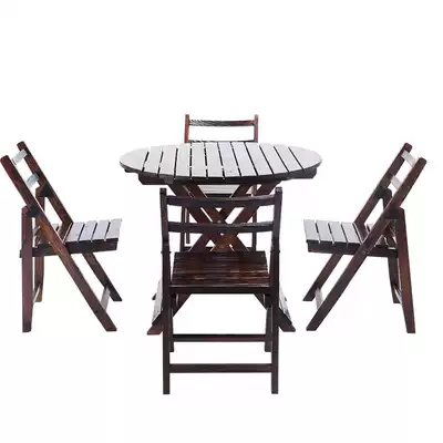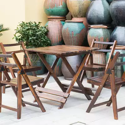 Outdoor table and chair balcony courtyard leisure table and chair carbonized anti-corrosion solid wood bar table and chair casual folding table and chair kit