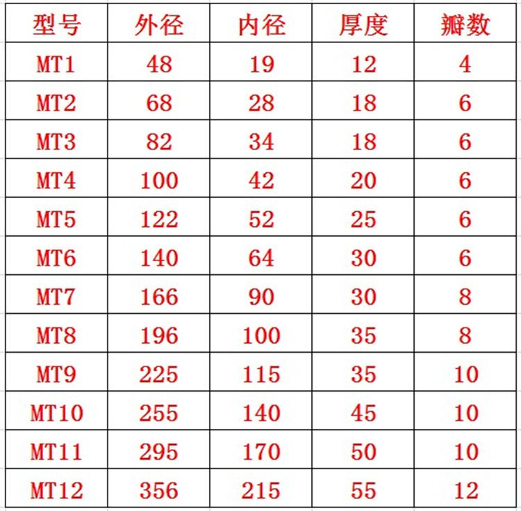 MT12(356*215*55MT11(295*170*50MT10(255*140*45MT9(225*115*35)