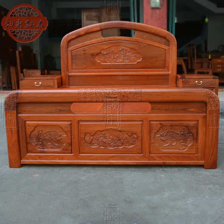 Myanmar Flowers Pear Wood 10 Cm Carved Lotus Wood Red Wood Thickened Bed Big Fruit Purple Sandalwood Bedroom Overvalued Furniture Exploits