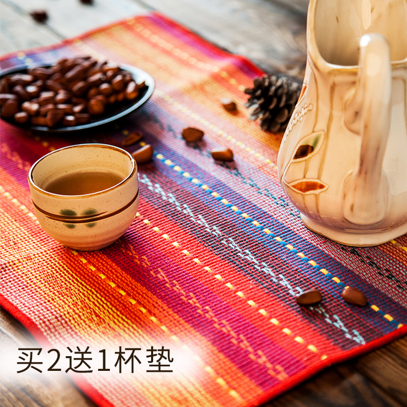 Pastoral thickened cotton placemat fabric linen non-slip heat insulation placemat Student placemat table mat Western mat Children