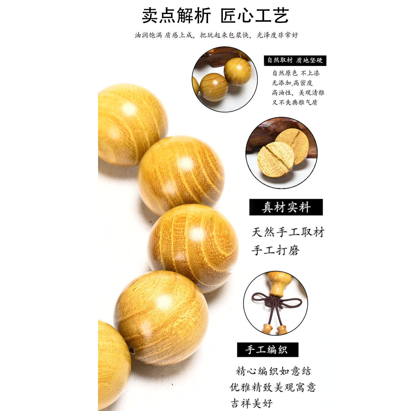 Zhengzong North stock Wooden Small Hole Gold Sandalwood Hand Strings 20mm Buddha Pearl accessories Handmade manufacturer direct sales