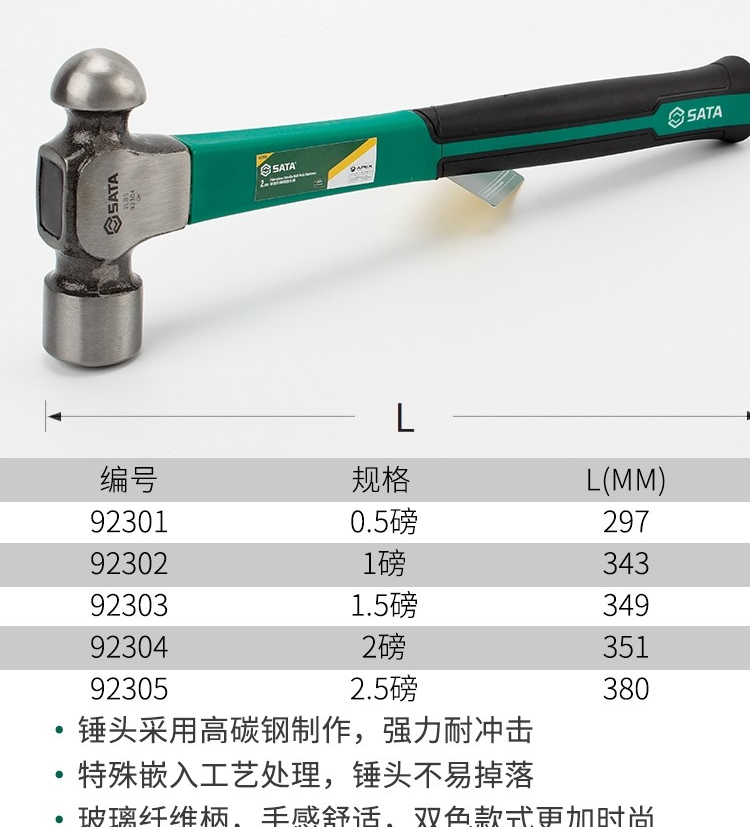 Shida Tools Fiberglass handle round head hand hammer 92301 92302 92303 92304 92305
