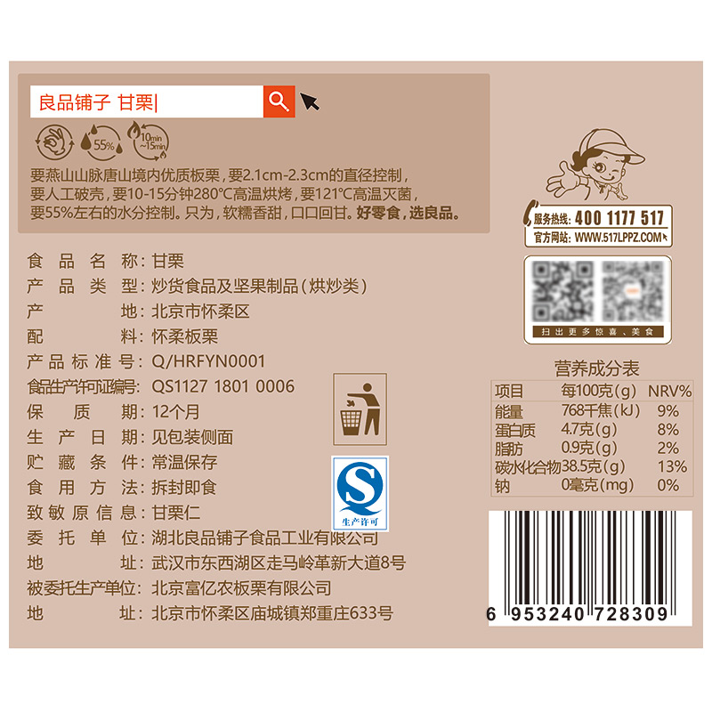 (Full reduction food)BESTORE chestnut 80g Yanshan chestnut kernels Nuo Xiang delicious healthy food chestnuts