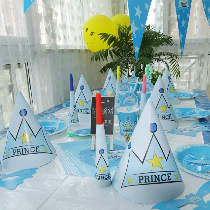 Prince crown theme decorating children birthday hat party dessert table tableware baby dress up accessories