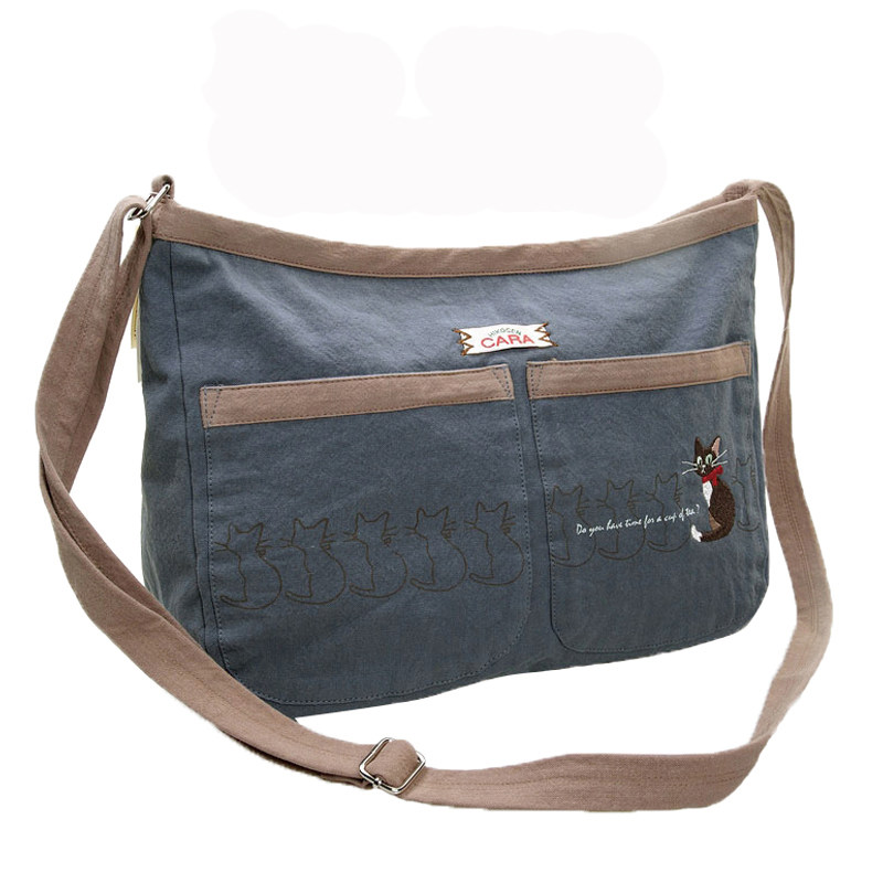 Kara Cat Ms. Creative Mom bag light embroidered in the old man canvas slope-shoulder bag