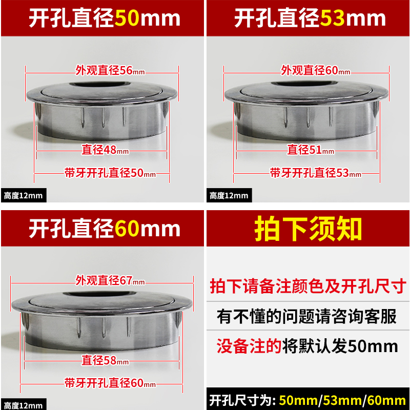 Computer desk hole threading hole cover 50 53 60MM book desktop through the wiring box outlet opening cover