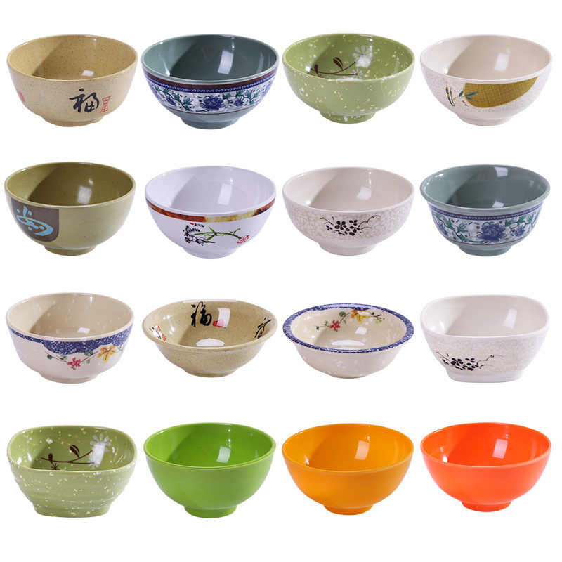 Imitation porcelain tableware melamine fast food school canteen rice bowl soup bowl sugar water bowl small bowl anti-fall plastic color bowl commercial