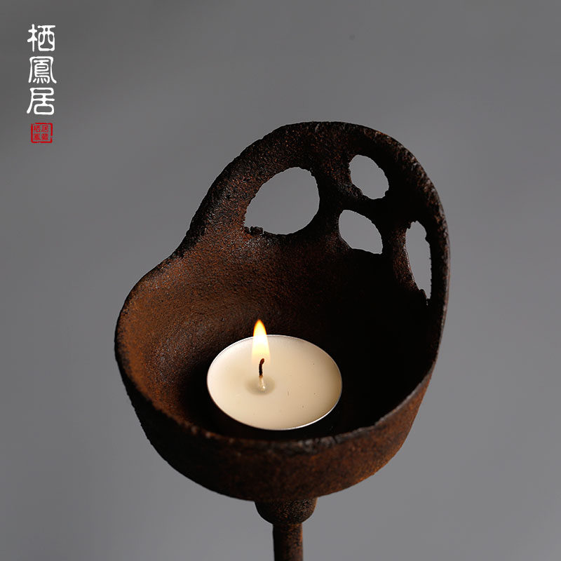 Shelter Anchow Handmade Retro Cast-iron Old Candle Desk Oil Lamp Old Things Chinese Zen tea Daolamp home (clear cabin)
