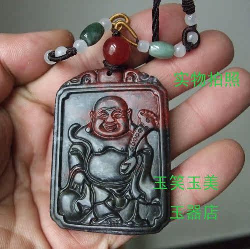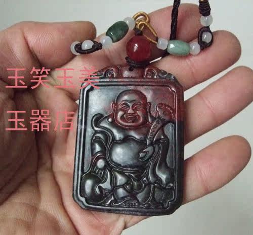 Natural A Chicken blood stone Jade Buddha pendant Ink Chicken blood Stone Laughing Buddha Ruyi Maitreya Buddha Lucky Buddha pendant