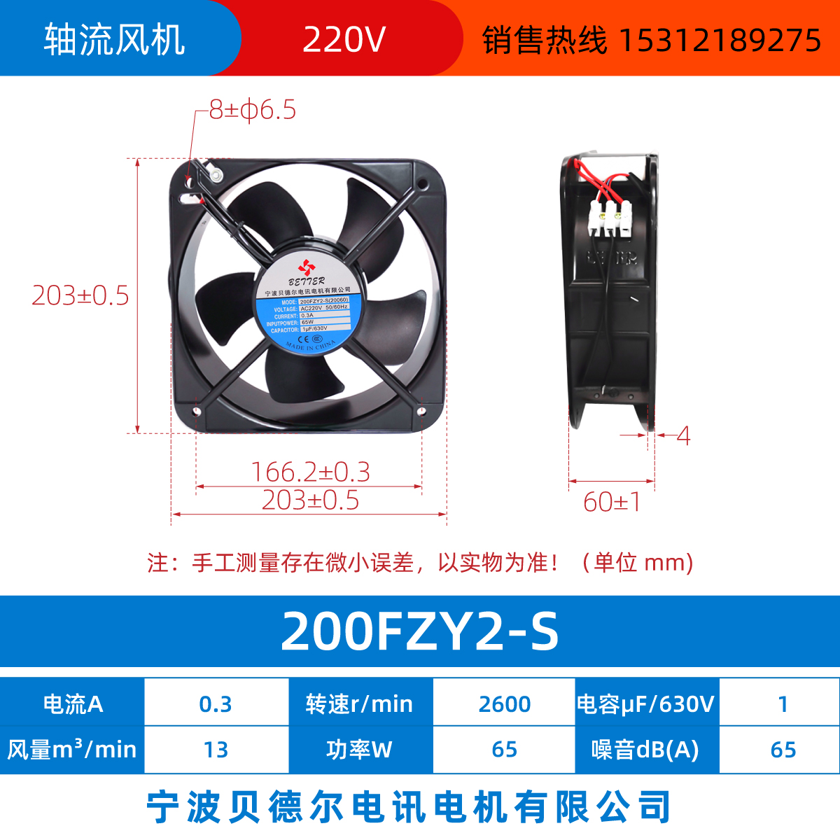 200FZY2-S(20060)Axial fan AC220V 65W Ningbo Bedel Telecommunications and Motor Co, Ltd