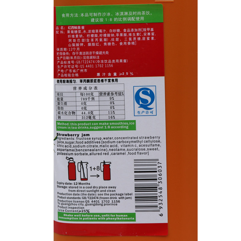 Red Grapefruit Juice Concentrate Jam Baili Fresh Red grapefruit juice concentrate drink puree ingredients 1 9L bottle