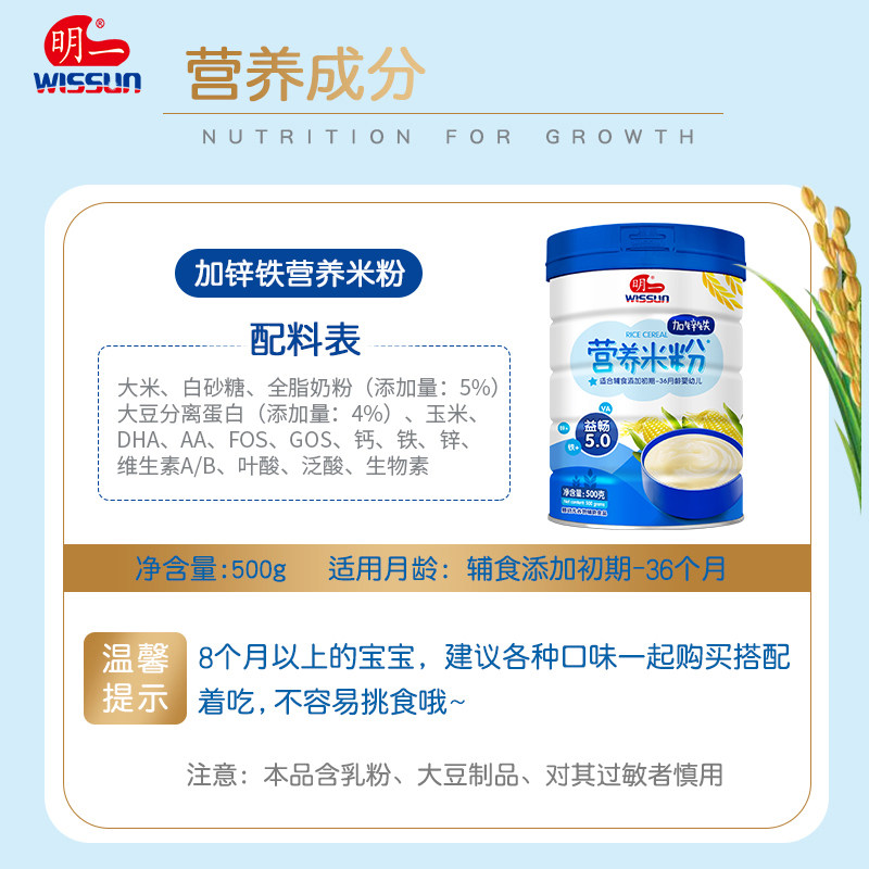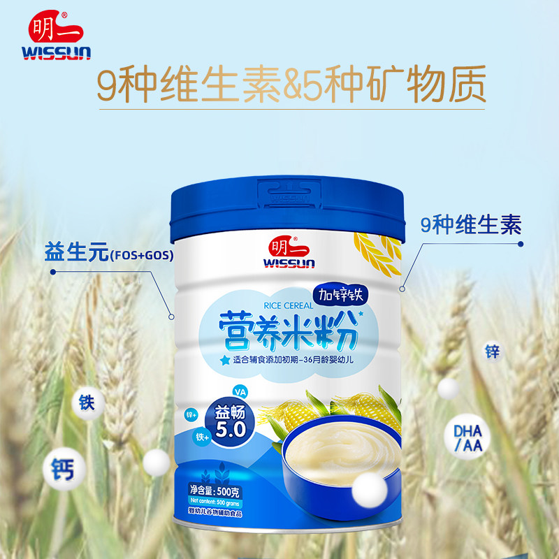 Min-one side food original flavor plus zinc iron nutrition rice flour infant rice burnt 500g canned carrapin multiple flavors