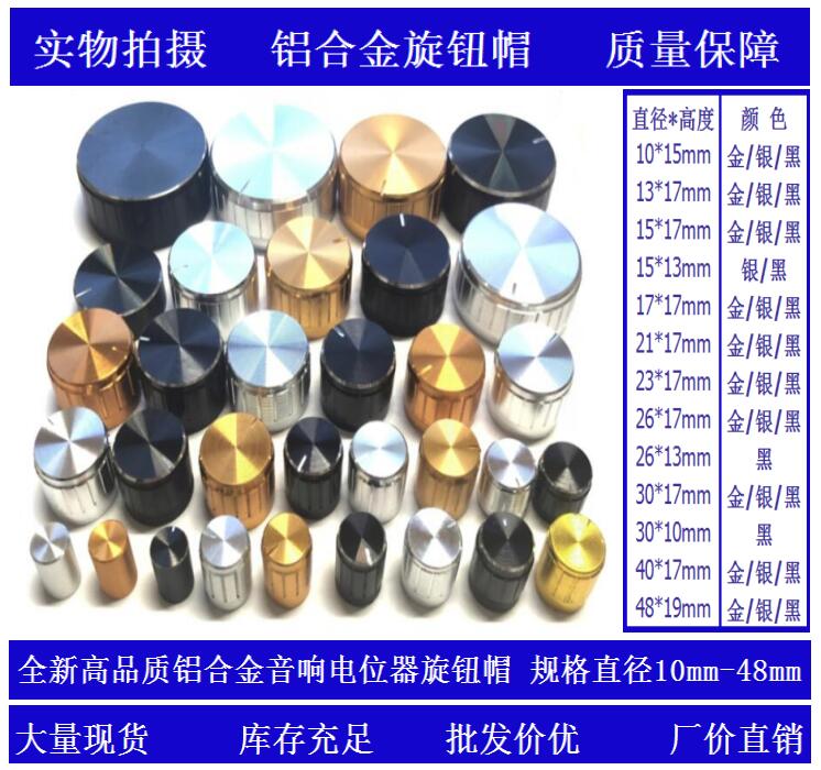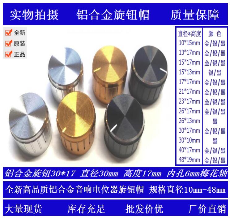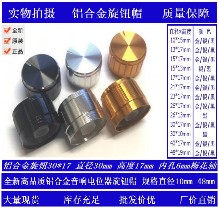 Potentiometer knob cap Audio amplifier Aluminum knob cap diameter 30mm high 17mm Gold silver black