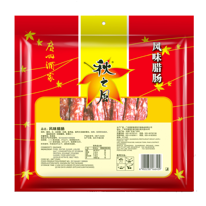 Guangzhou Restaurant Autumn Style Sausage 400g Vacuum Bag Cantonese Special Cantonese-style Sweet Sausage Sausage New Year's Goods