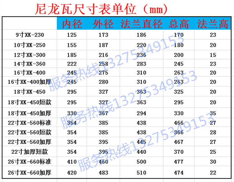 9 inches 10 inches 12 inches 14 inches 16 inches 22 inches 26 inches