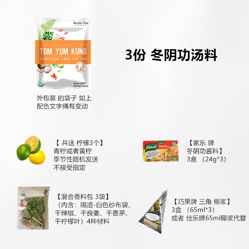 3 parts Tom Yin Gong Base Ingredients 3 parts Tom Yin Gong + 3 parts Tom Yin Gong + Red Oil + Fish Sauce 3 parts Tom Gong + Red Oil + Fish Sauce + Seafood Sauce