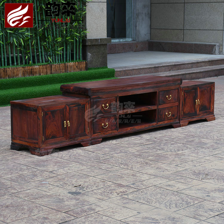Lao Large Red Acids Branches Vegetarian Noodles Triple Combo TV Cabinet Solid Wood Antique Getaway Cabinets Toe Yellow Sandalwood Guest Hall Furniture