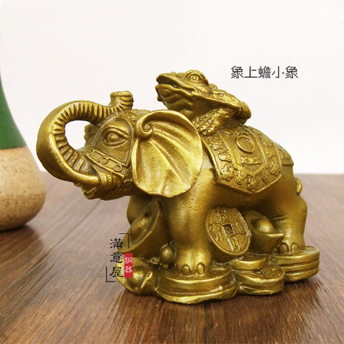 Pure copper elephant auspicious water-absorbing elephant on the toad to attract wealth and wealth town house home shop office porch decoration ornaments