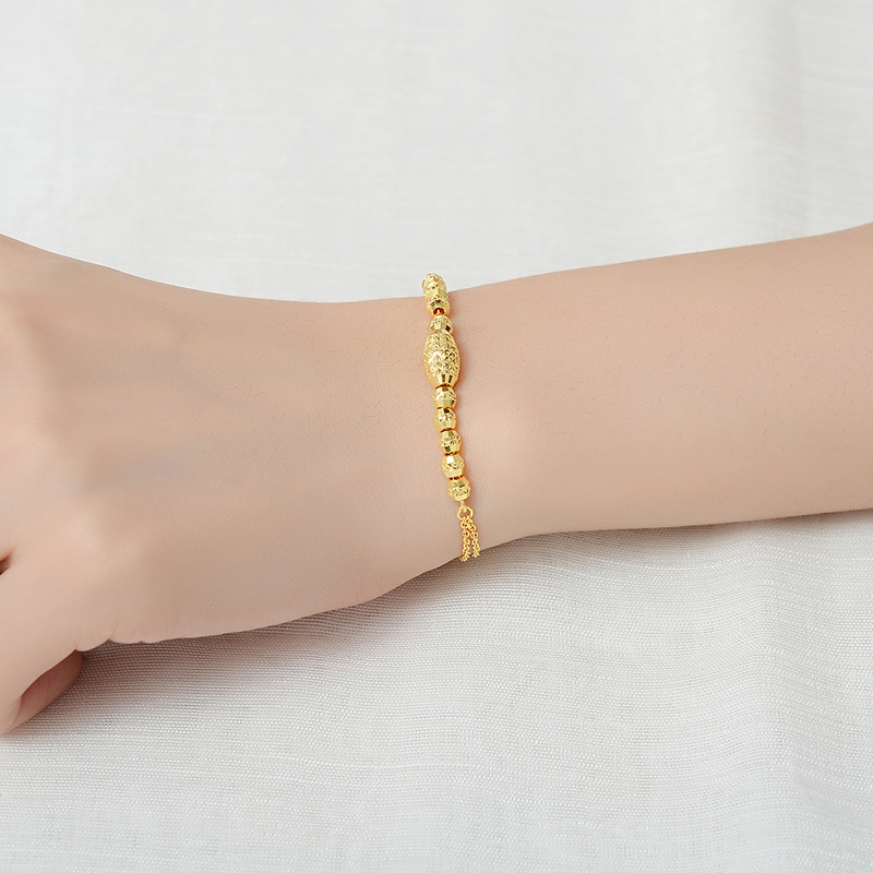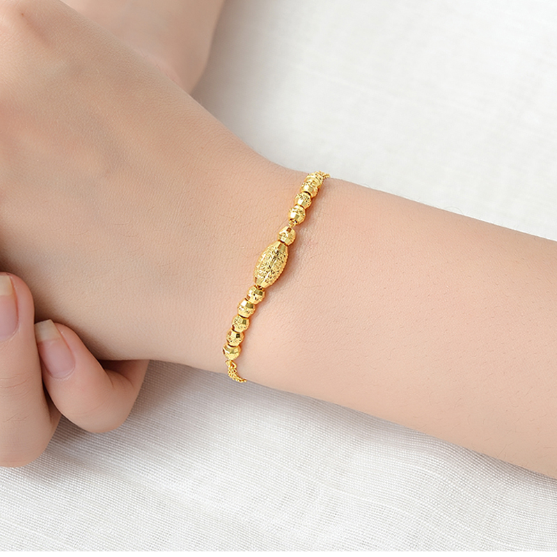 Hot selling source Shengfu 999 pure gold female fashion wild laser transfer beads gold bracelet adjustable