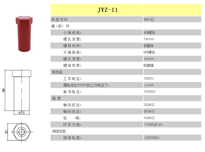 High quality hexagonal red insulator high 50mm diameter 20mm M8 nut JYZ-11 insulation column BMC