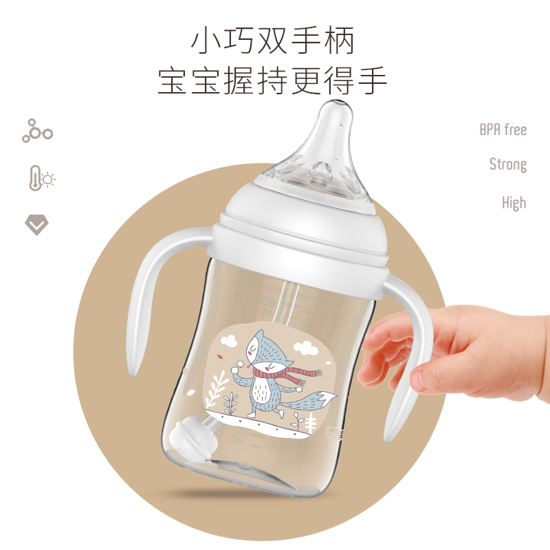 Nikon baby bottle newborn PP wide caliber baby straw bottle anti-flatulled gas with handle anti-Taobao