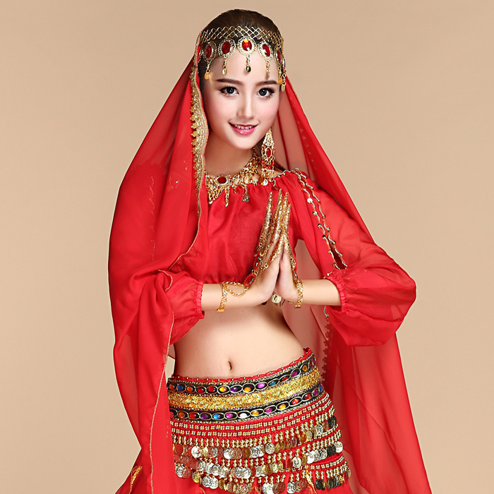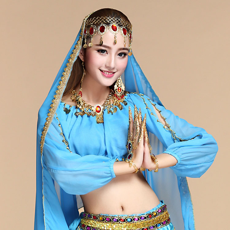 Belly dance dress shirt with belly leather dance suit to perform blouses blouses Indian dance practice Lanterns Long Sleeves