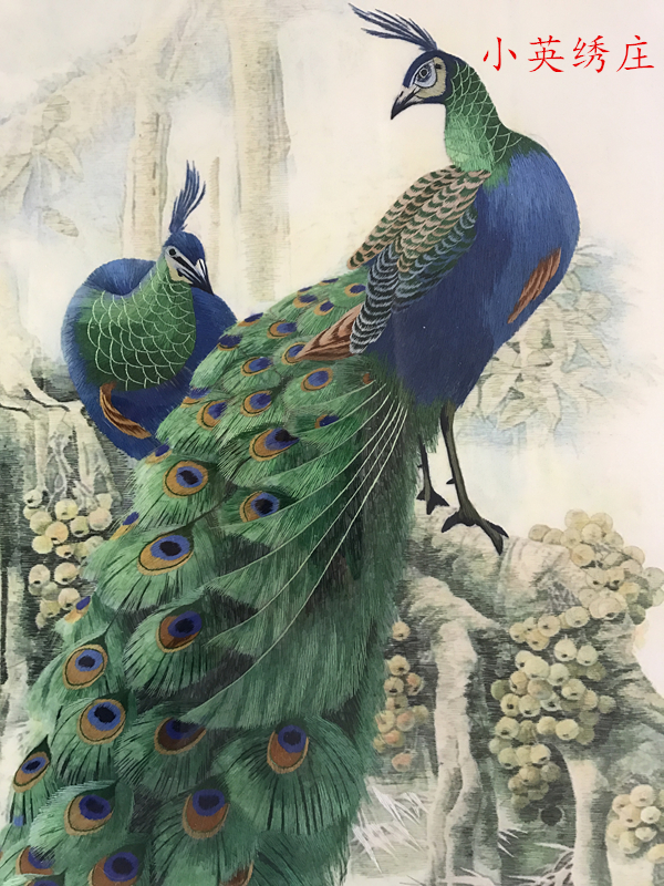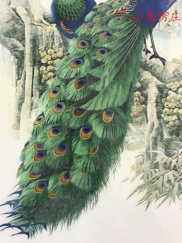 Pure handmade new boutique Suzhou embroidery painting Su embroidery finished hanging painting entrance decorative painting 4060 rich peacock