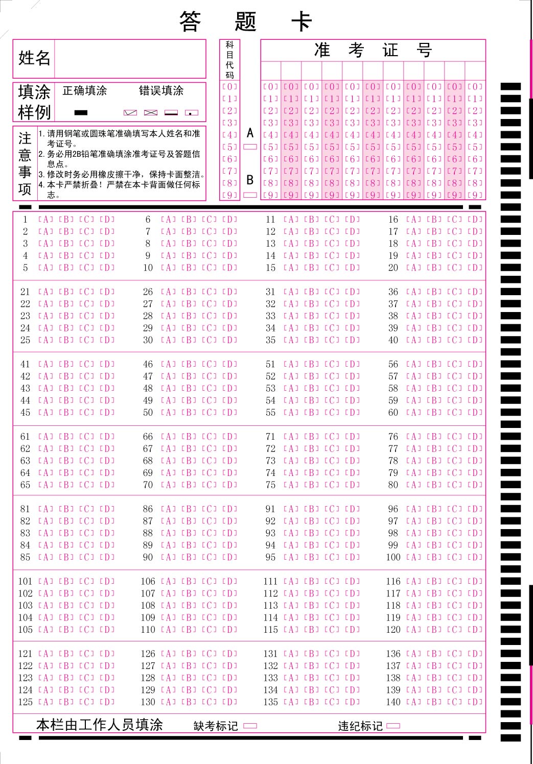 Standard printed 140 questions answer card machine read 2B pencil fill with ABCD4 option-Taobao