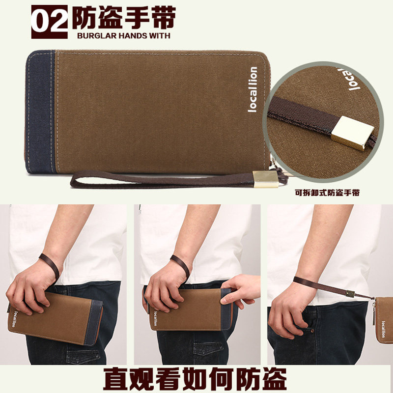2021 new men's wallet long version canvas money clip Han version canvas zero wallet card bag men's long version handbags