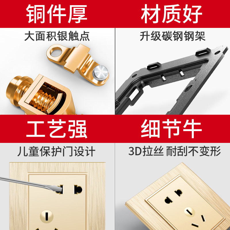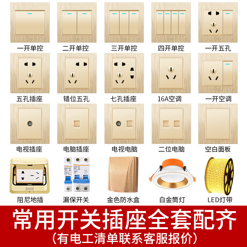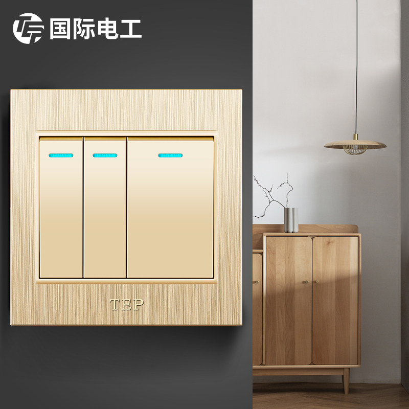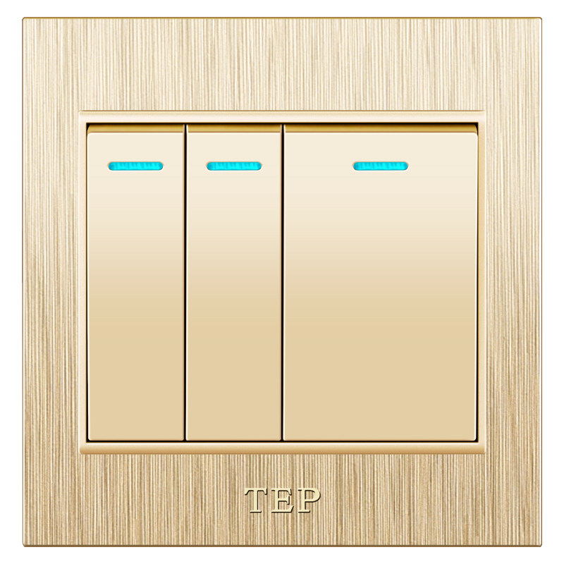 (3D wire drawing) TEP wall panel 86 type midway switch three-open multi-control with fluorescent champagne gold