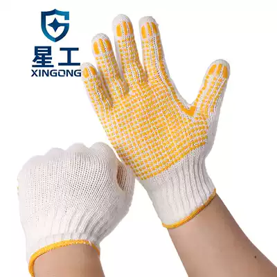 Beijing Xingong point plastic bead dispensing gloves non-slip wear-resistant labor protection cotton yarn gloves