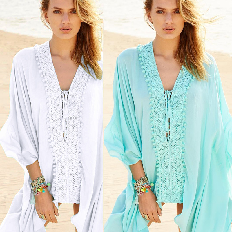 Bikini blouse lace sunscreen beachwear casual loose large size slim seaside vacation swimsuit jacket women